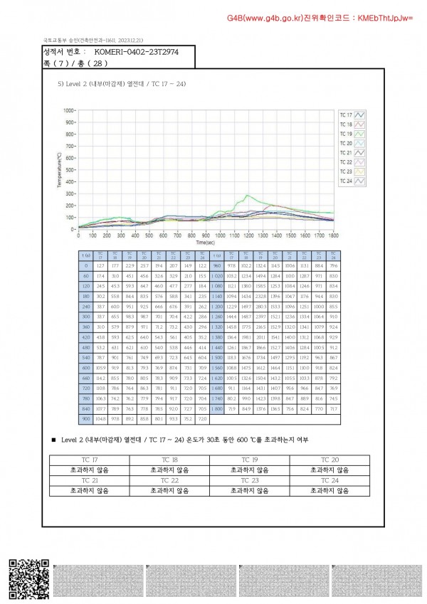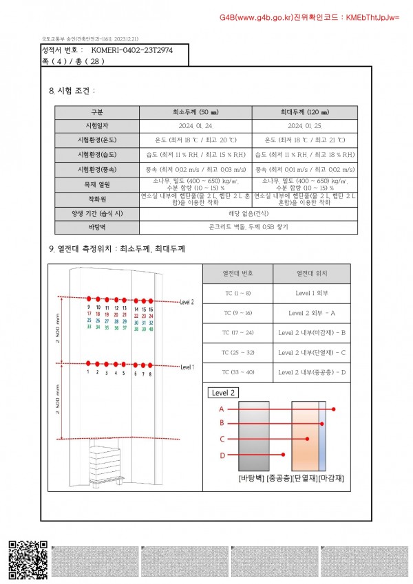 실물모형시험성적서-석제단열패널시스템 > 인증내역